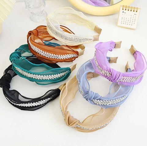 ตาข่ายรัดผมพลาสติกสำหรับผู้หญิงสไตล์ย้อนยุค,ผ้าตาข่ายมุมกว้างพร้อมที่คาดผมเพชรผูกปม