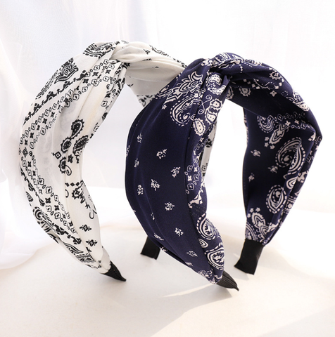 ที่คาดผมพิมพ์ลายพร้อมแถบคาดศีรษะผูกปมดอกไม้ขนาดเล็ก