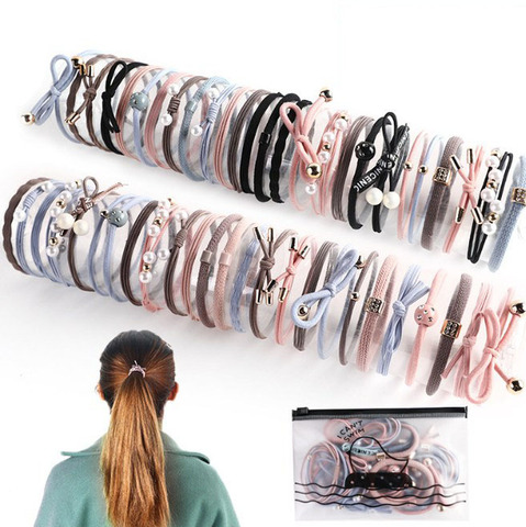 Color Crystal Elastic Rubber Band Ponytail Rope with Web Celebrity Pearl Scrunchies
