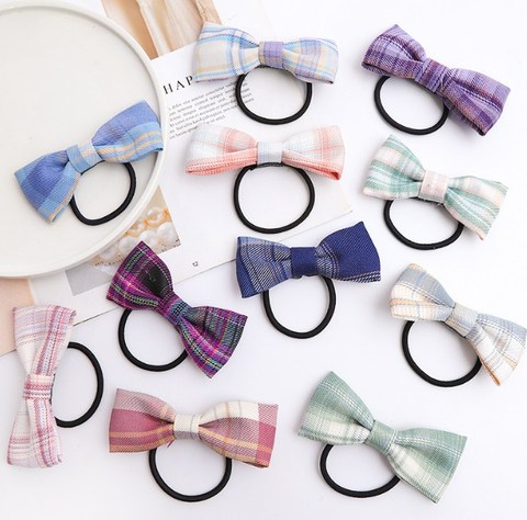 Cloth Plaid Bow Hair Rope Elastic Rubber Band Preppy Girl Head Rope